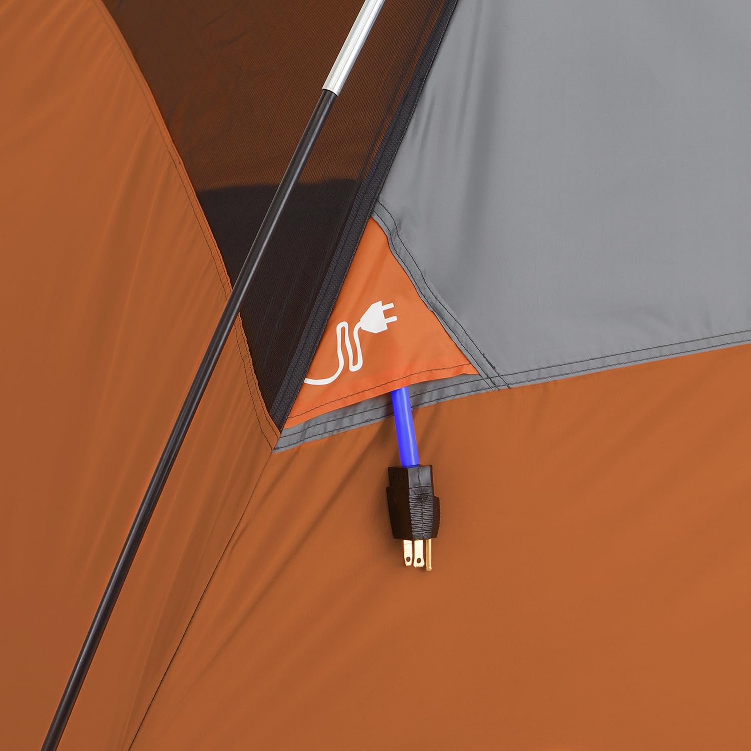 About this item This fits your . Make sure this fits by entering your model number. Sleeps 9 people; Fits three queen air mattresses; Center Height: 72 inches CORE H20 Block Technology and adjustable ground vent.Pole Type: Traditional Fiber Glass Poles Features gear loft with lantern hook and pockets to keep items organized and off the tent floor Electrical cord access port (port is fully closable when not in use) Includes tent, tent poles, rain fly, tent stakes, and carry bag. All Core tents are equipped with water resistant PU coated fabric and taped seams to help keep moisture out