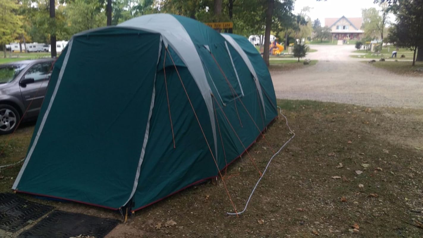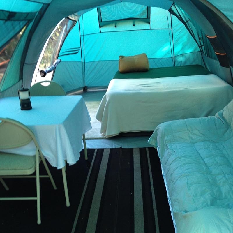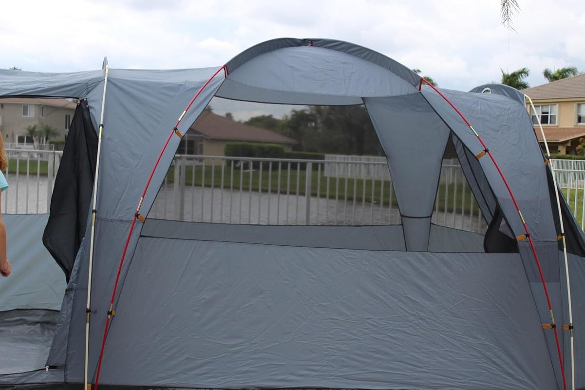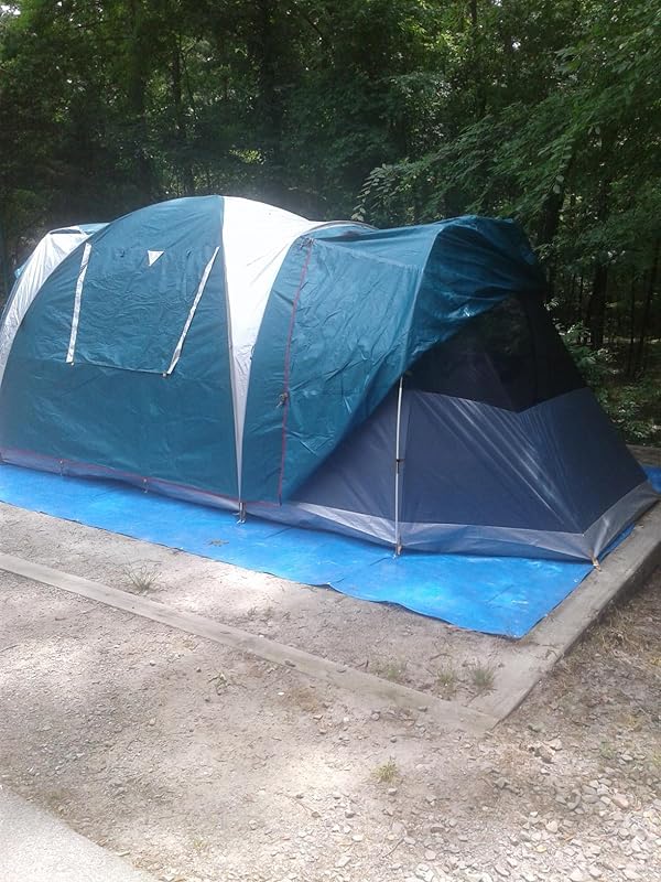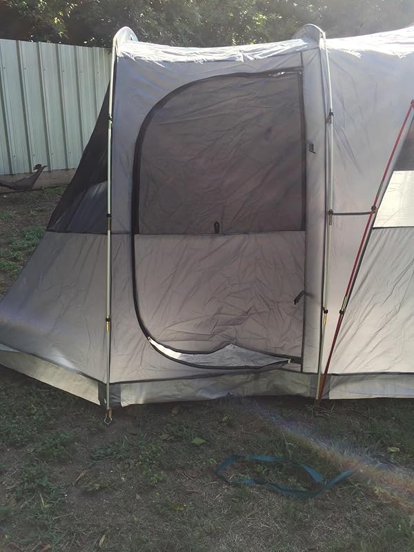 My favorite large tent I have owned. Good times.Pros; Very spacious and nice to work in on rainy days, held up to wind very well for such a high profile tent, I had always stayed very dry with the exception of my last day in it, A nice interior layout overall, It was nice to keep all of my gear, cooler, and kitchen box all within its confines whilst allowing more room in my sub-compact car for sharks.Cons; Needs beefier tent poles, it still takes a lot of space even when crammed in the bag, you need to keep the rain cover on for U.V. protection all of the time or else holes will pop up randomly from U.V. degradation (the mosquitoes are waiting). The floor had several small holes after a while that fire ants always found a way in (I never laid a tarp underneath it although it was always turf grass or soft sand) my fault? Lastly it is not tornado proof as you can see from the picture. Luckily a tree landed on me and kept me from blowing away, unlike the poor sap who was sleeping in a hammock tent next to me and then got blown into the woods behind me, he was twisted up the the trees screaming for help. Sorry I know not of the brand he was using 🙁