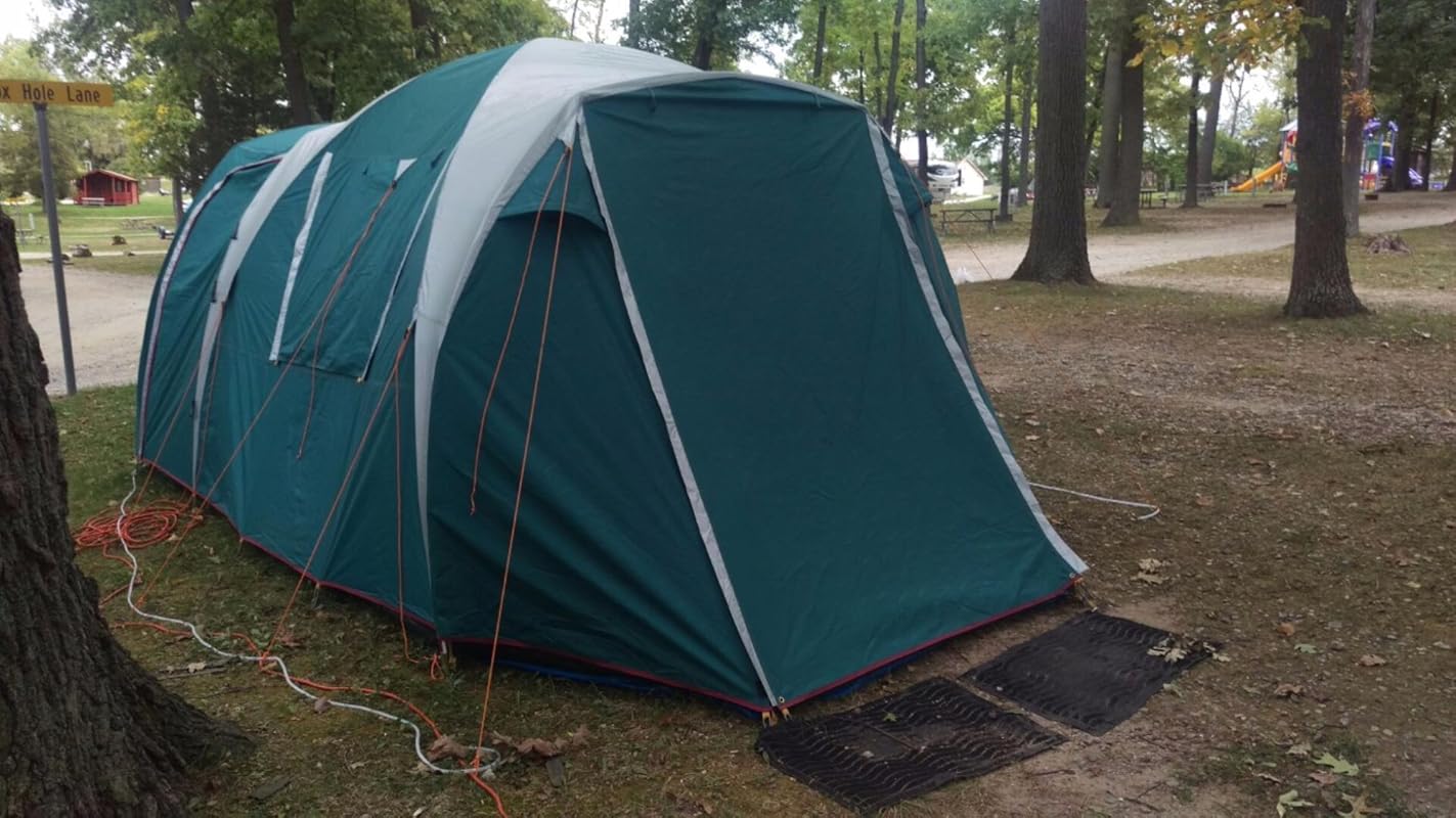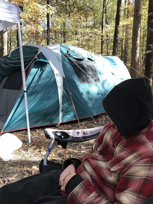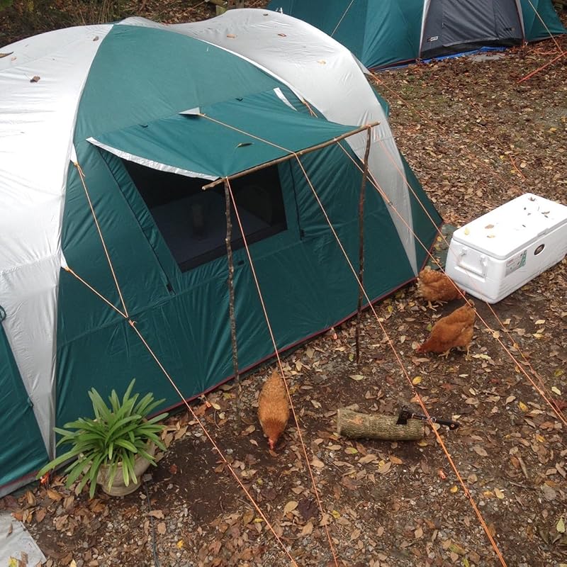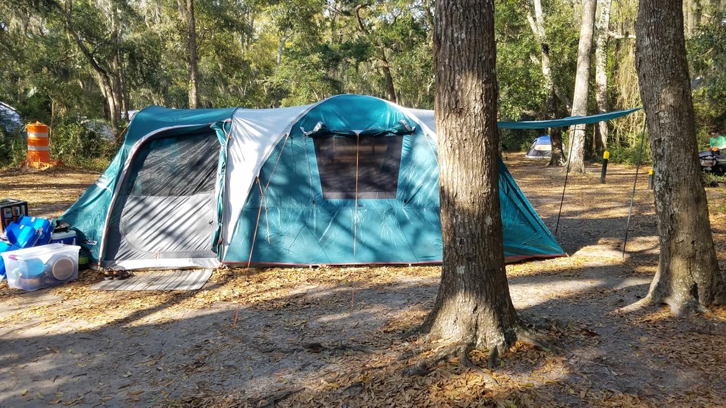 My favorite large tent I have owned. Good times.Pros; Very spacious and nice to work in on rainy days, held up to wind very well for such a high profile tent, I had always stayed very dry with the exception of my last day in it, A nice interior layout overall, It was nice to keep all of my gear, cooler, and kitchen box all within its confines whilst allowing more room in my sub-compact car for sharks.Cons; Needs beefier tent poles, it still takes a lot of space even when crammed in the bag, you need to keep the rain cover on for U.V. protection all of the time or else holes will pop up randomly from U.V. degradation (the mosquitoes are waiting). The floor had several small holes after a while that fire ants always found a way in (I never laid a tarp underneath it although it was always turf grass or soft sand) my fault? Lastly it is not tornado proof as you can see from the picture. Luckily a tree landed on me and kept me from blowing away, unlike the poor sap who was sleeping in a hammock tent next to me and then got blown into the woods behind me, he was twisted up the the trees screaming for help. Sorry I know not of the brand he was using 🙁