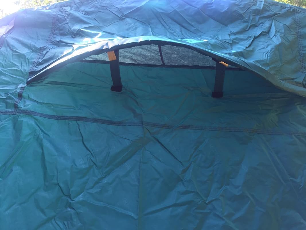 It’s a great size and seems quite well made. My issue is that your only options are to use it without the rain cover, so it’s got tons of mesh and little privacy. Or you put the rain cover over it, which makes it nice and dark, but it also blocks your windows and makes it so you have to go outside to open them. If it’s raining, you don’t have much ability to open anything for air through the tent 🙁