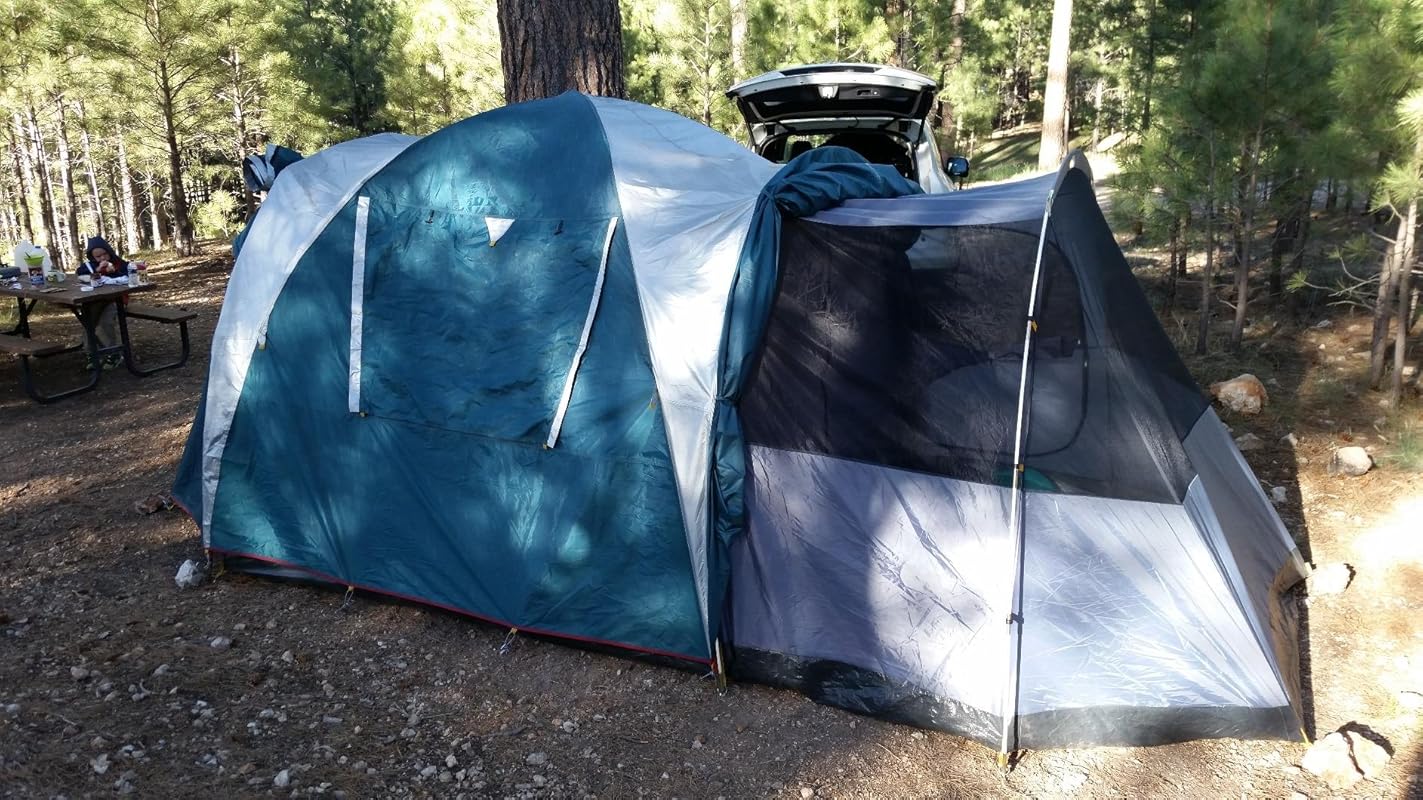 We got this tent after weeks of research both online and with friends, the brand is not that famous but these guys know what they are doing, that is for sure. Our idea was to get the Arizona 9/10 but then this smaller one showed up and it was just the right size we need with all the perks of the bigger one. For starters this is a very big tent and it is still easy to put up, the color coded poles make it so easy, of course we had seen some of the online videos so that gave us a better idea.Our campsite was in South Florida and we go hit by rain most of the 2 nights, can’t lie, when it started pouring and blowing I began checking on booking.com for a hotel, I didn’t believe the tent would hold up, we are not experienced campers and thought tents just leaked…but for our surprise our NTK held up like a warrior and we all slept nice and dry all night long. We have to thank NTK people for making such a reliable tent and we do recommend to all other families out there looking for a tent. Also a big thank you to our friends that told us to get this tent.In the morning we could see how bad the rain was, over 10 families were packing and leaving, I guess most of them will buy an NTK tent soon! They were impressed that our Arizona was standing proud and tall.During the day we opened the windows and rolled the doors wide open and could have a nice power nap after lunch, nice breeze goes through the mosquito net (there are plenty) and none of the tropical insects came in.When leaving we had to put our tent down and that was another challenge for us, luckily the carry bag was bigger than needed, we rolled the tent right into it with no squeezing, pushing, kicking…just a quick zip and our tent was in the trunk and ready for the next family adventure!We are not used to write reviews but considering the importance of a tent, we think it is a way to help other families that are starting in the outdoor world like us. Will try to paste some photos later on.